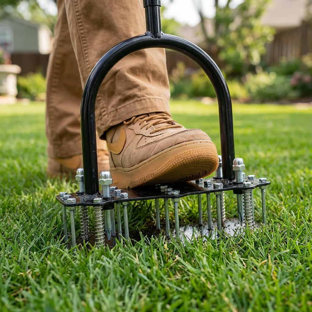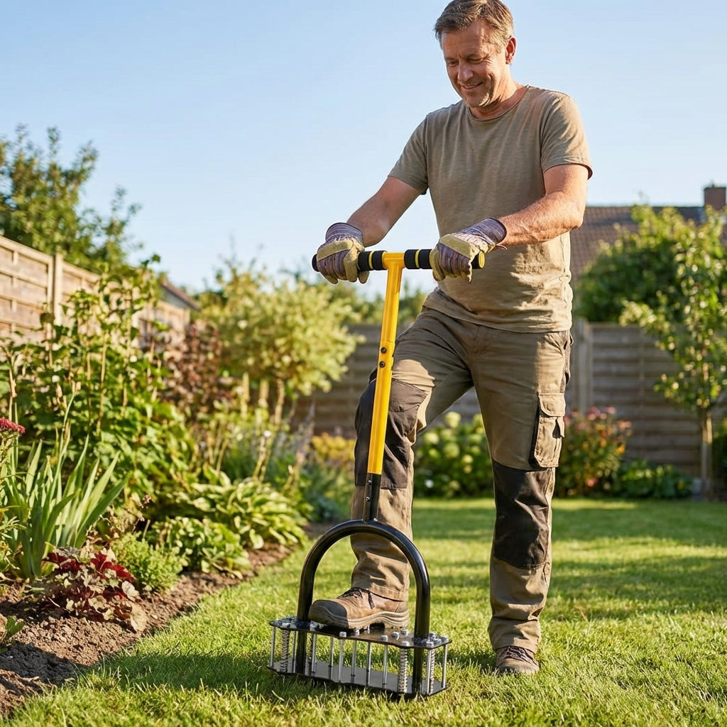 Sol très compact après l’hiver. J’ai utilisé l’aérateur deux fois et l’herbe commence déjà à mieux respirer. Outil solide, facile à prendre en main et surtout sans se casser le dos. Je recommande sans hésiter.