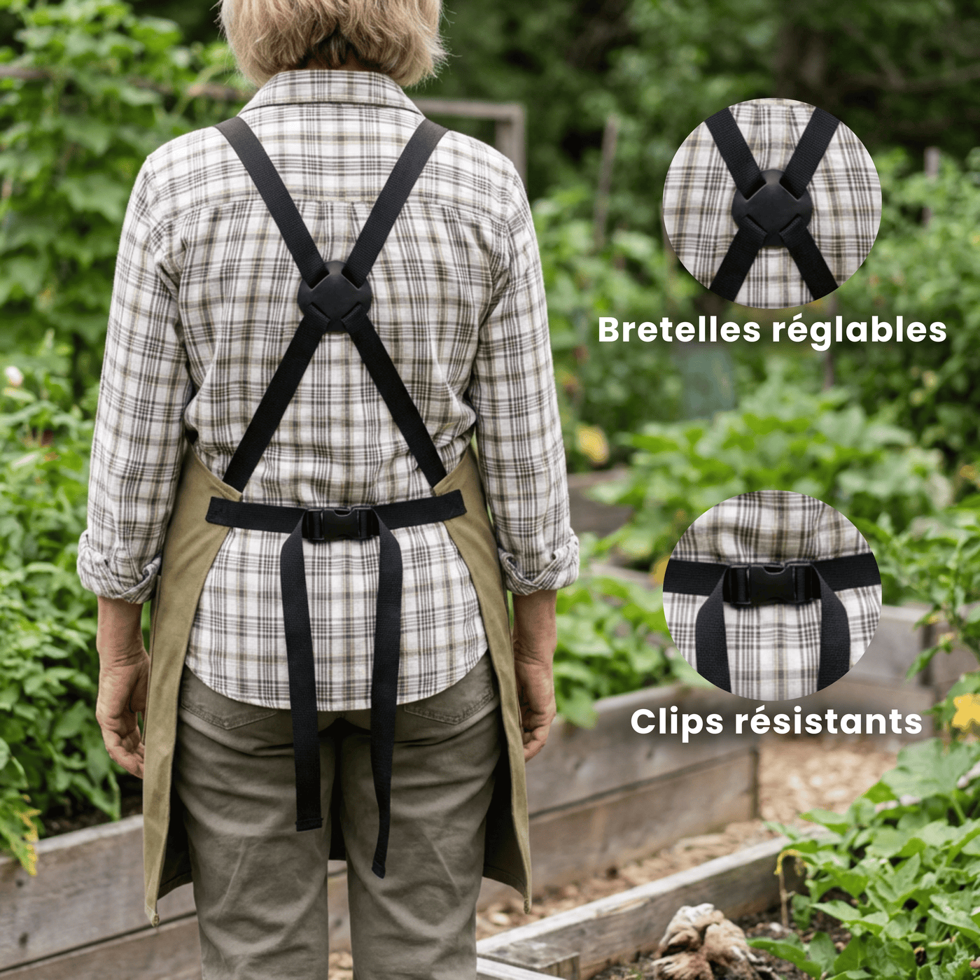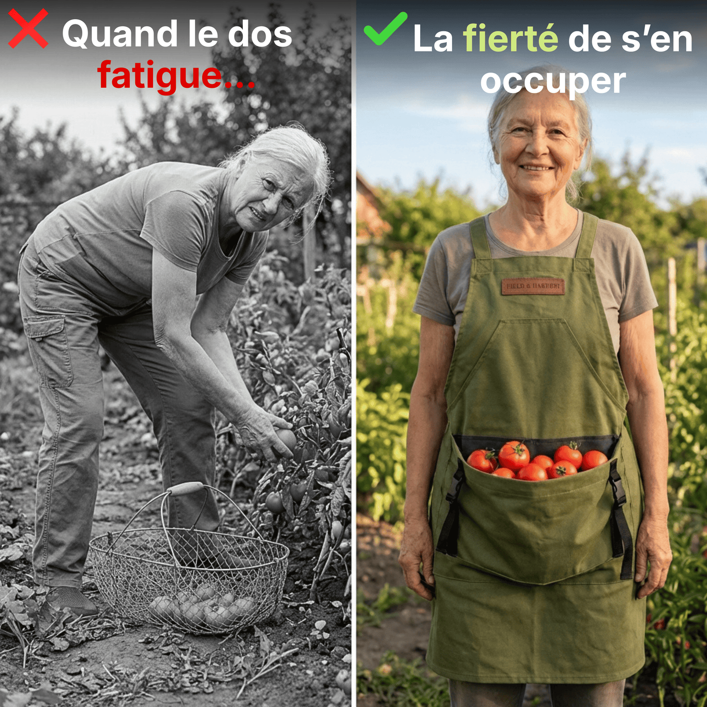 À mon âge, jardiner devenait compliqué à cause du dos. Avec ce tablier, je peux récolter et ranger sans me baisser sans arrêt. C’est vraiment plus confortable.