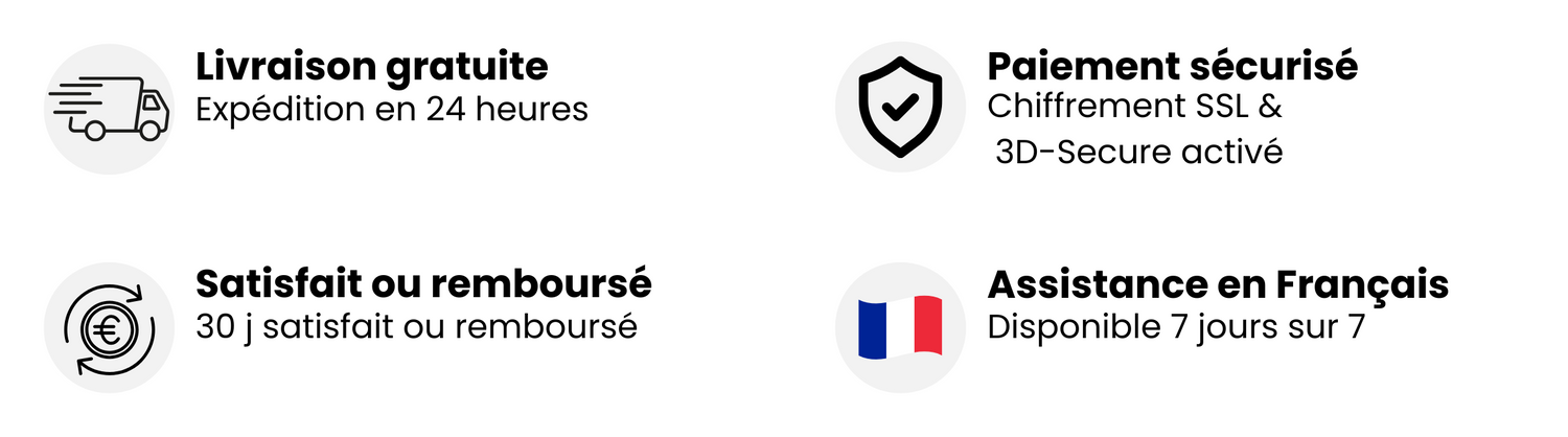 Si vous n’êtes pas entièrement satisfait, nous vous remboursons selon la méthode de votre choix.