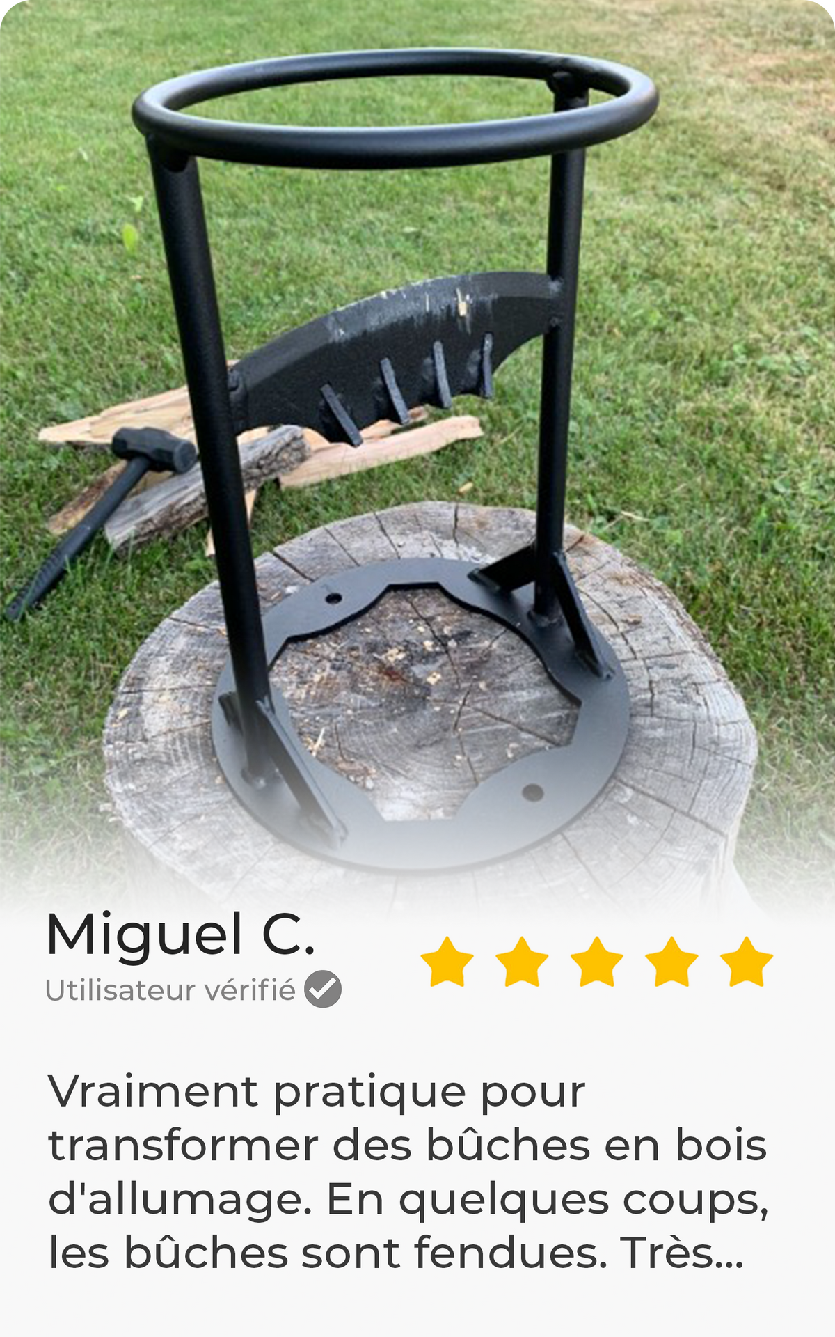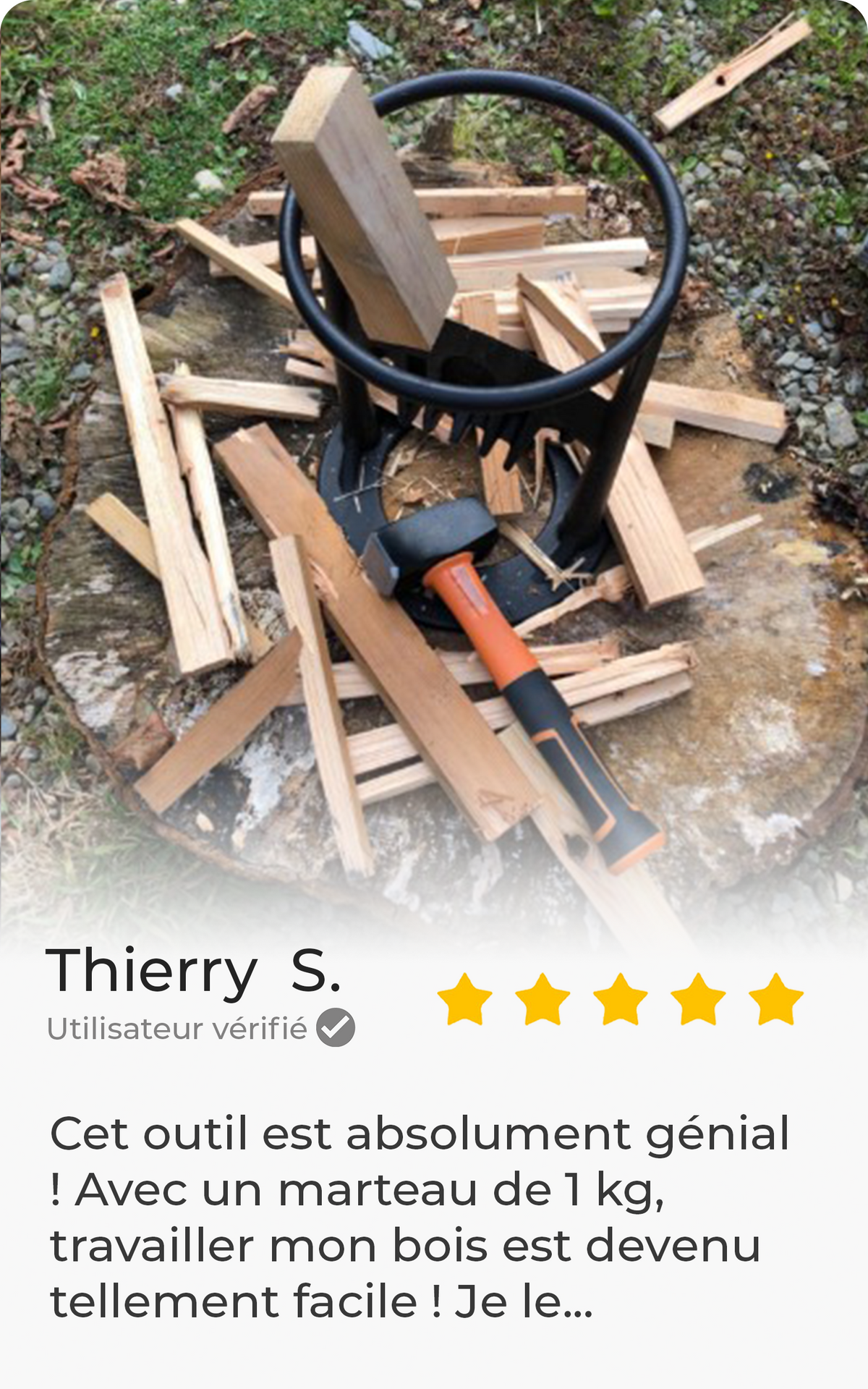 Rapide et sans effort : Il suffit de poser le bois et de frapper avec un maillet pour le fendre en quelques secondes. Parfait pour faire du petit bois facilement, à votre rythme.