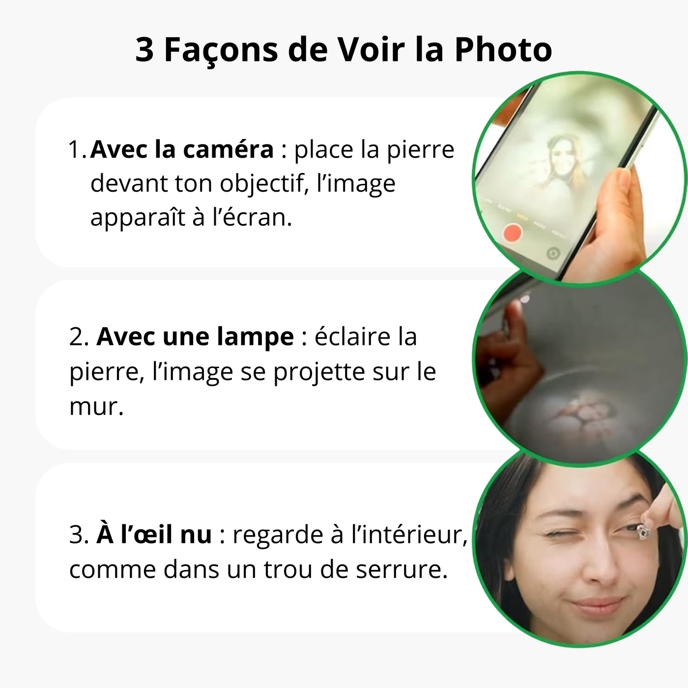 Une fois votre flocon reçu, découvrez l’image en un instant : avec la caméra, une lampe ou simplement à l’œil nu.