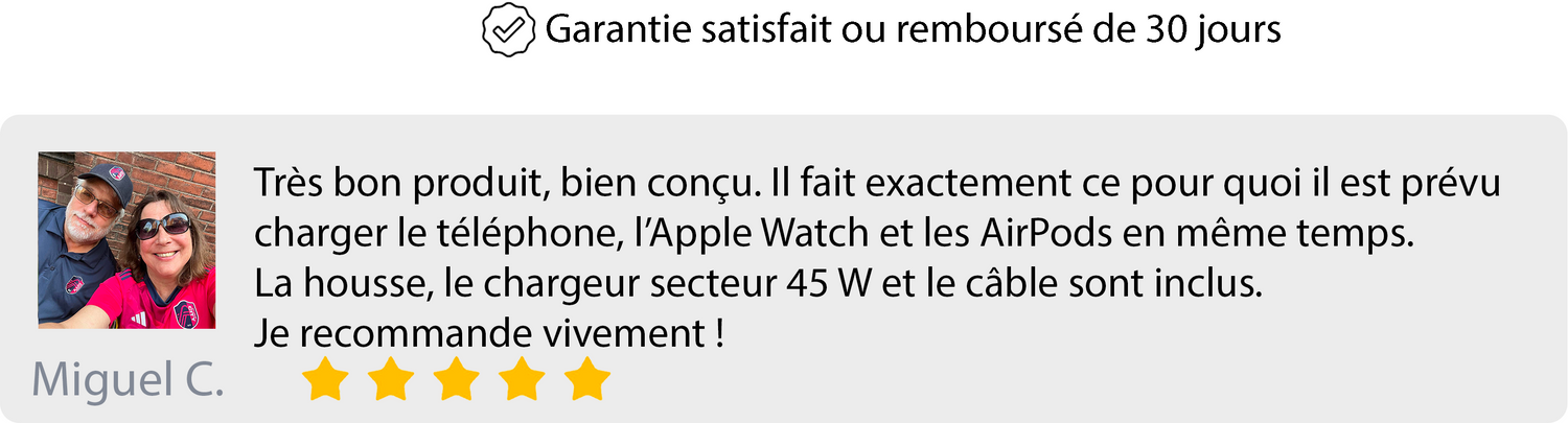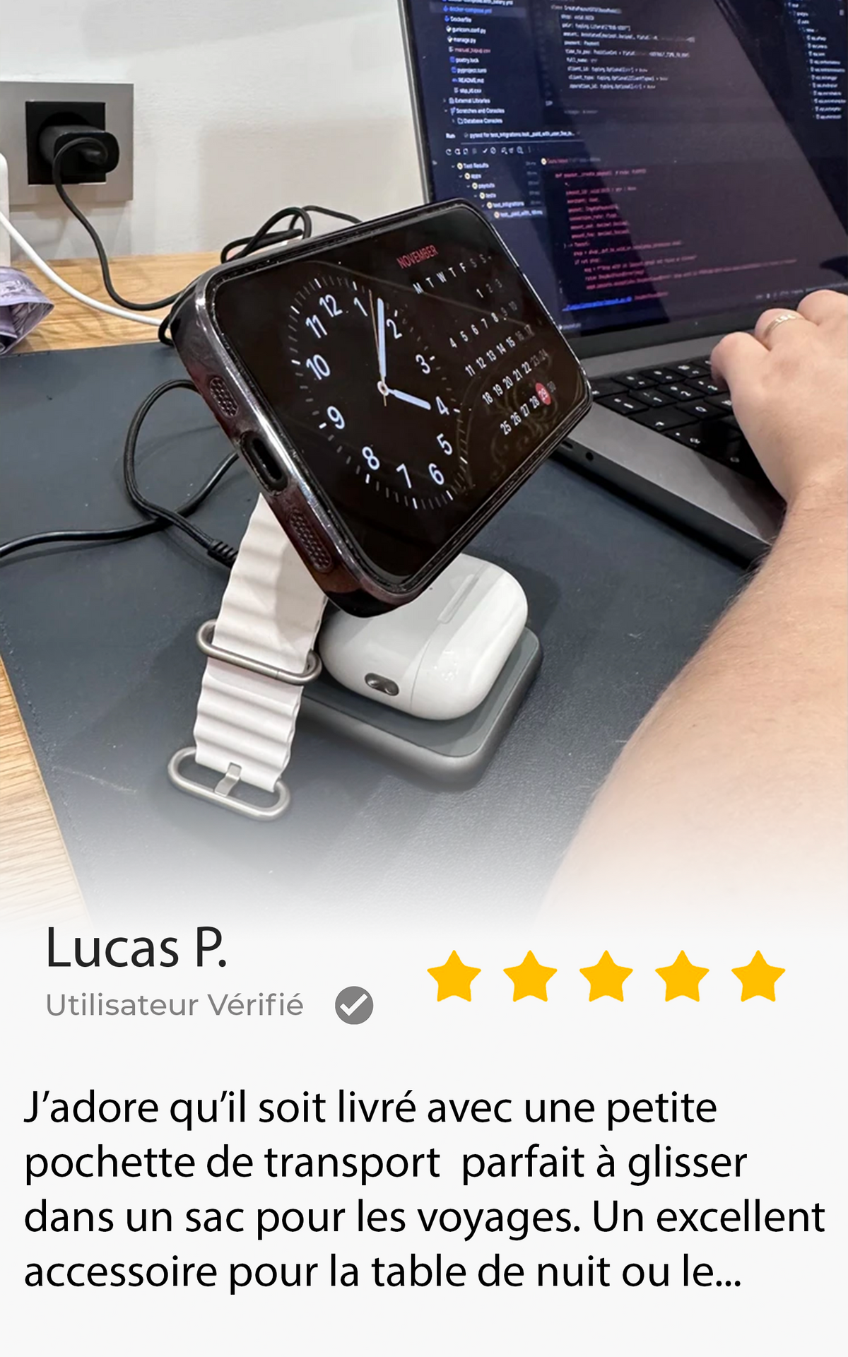 Compatibilité totale : iPhone (12 à 17), Apple Watch et AirPods rechargez tous vos appareils en même temps.