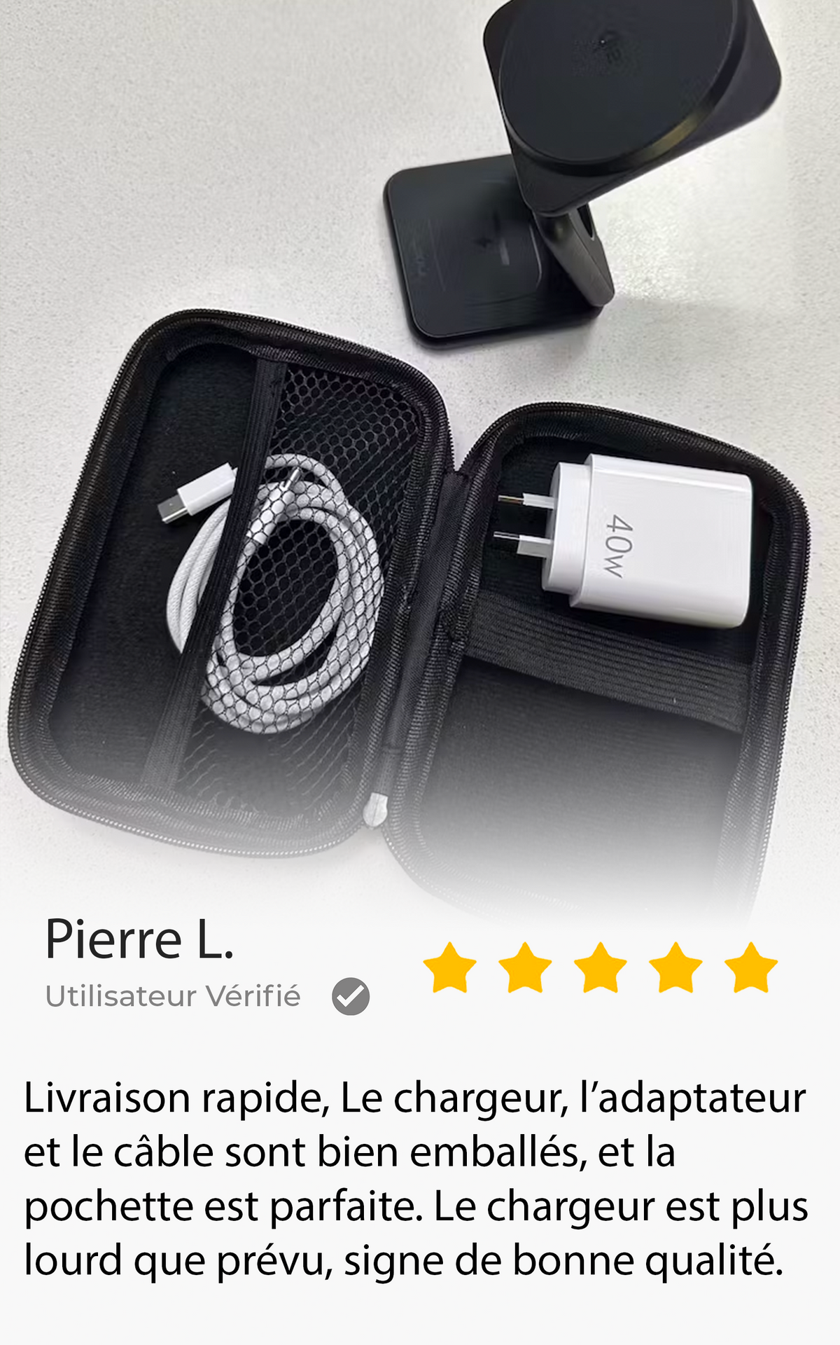 Charge ultra-rapide : Recharge votre iPhone à 80 % en seulement 45 minutes, sans surchauffe ni usure de la batterie.